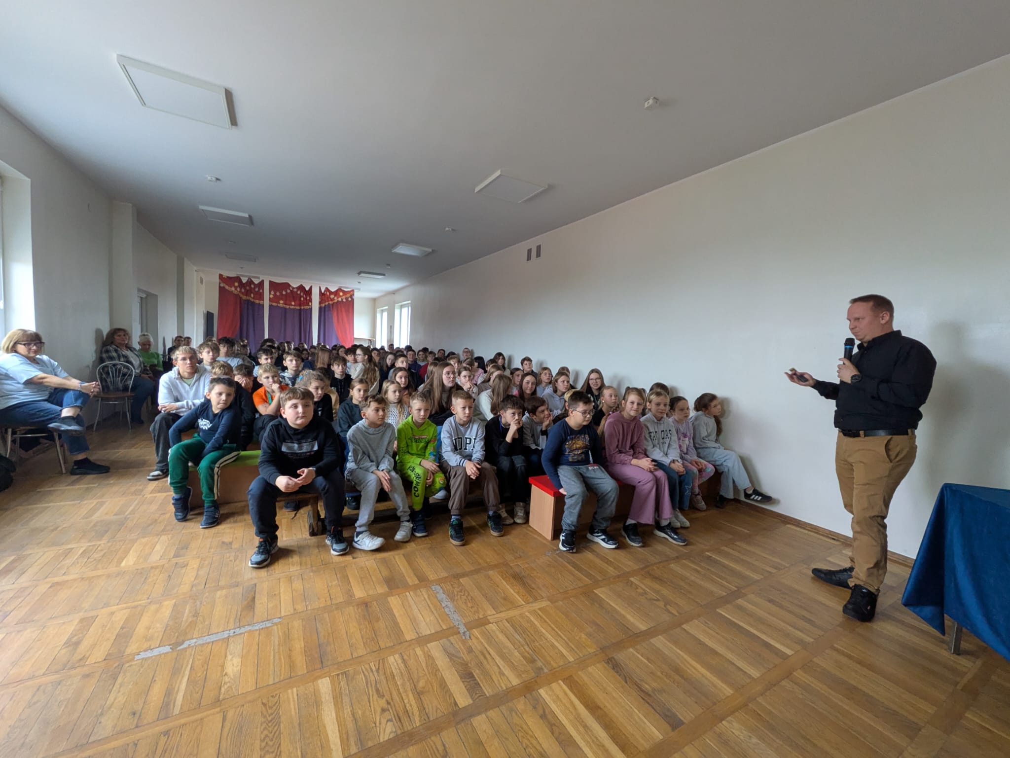 „Krajew”, bo takim pseudonimem posługiwał się podczas swojej kariery wojskowej, ukończył Liceum Lotnicze w Dęblinie oraz Wyższą Szkołę Sił Powietrznych w Dęblinie (obecnie Lotnicza Akademia Wojskowa). Opowiedział on uczniom klas siódmych i ósmych o ścieżce edukacyjnej i zawodowej pilota. Jego doświadczenie wojskowe to pilotowanie odrzutowca MIG 29, a następnie prezydenckiego samolotu Boeing 737. Obecnie nasz gość pracuje jako pilot w liniach LOT. Przekazał też informacje o najważniejszych aspektach związanych z pilotażem maszyn i przekazał wiele ciekawostek z pogranicza fizyki i mechaniki, związanych z lataniem. Pan Irek pokazał naszym uczniom świat, którego nie znają na co dzień, a zaangażowanie uczniów w rozmowę z nim pokazało, że jest temat niezwykle ciekawy. Być może ktoś z uczestników spotkania pójdzie w ślady naszego Gościa.